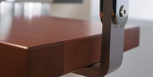 La struttura autoportante si compone di moduli in ferro verniciato collegati da un sistema di fissaggio brevettato che offre una notevole robustezza, rispetto alle classiche scale prefabbricate. La regolazione avviene tramite distanziali in policarbonato che permettono a Knock Design di adattarsi a tutti gli spazi, anche quelli più critici in modo semplice e preciso. I gradini sono in legno massello di faggio finger joint, spessore 4 cm collegati alla struttura tramite supporti. Il corrimano è in legno massello in tinta con i gradini oppure in acciaio verniciato o inox.