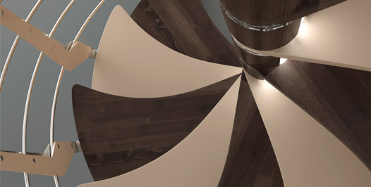 Trio, pur facendo parte della categoria delle scale a chiocciola in legno, ne stravolte il concetto trasformandola in un oggetto di design che è possibile plasmare per adattarlo alla propria personalità o allo stile della casa. Un oggetto unico che supera la dimensione funzionale attraverso uno stile versatile e alla libertà di personalizzare.