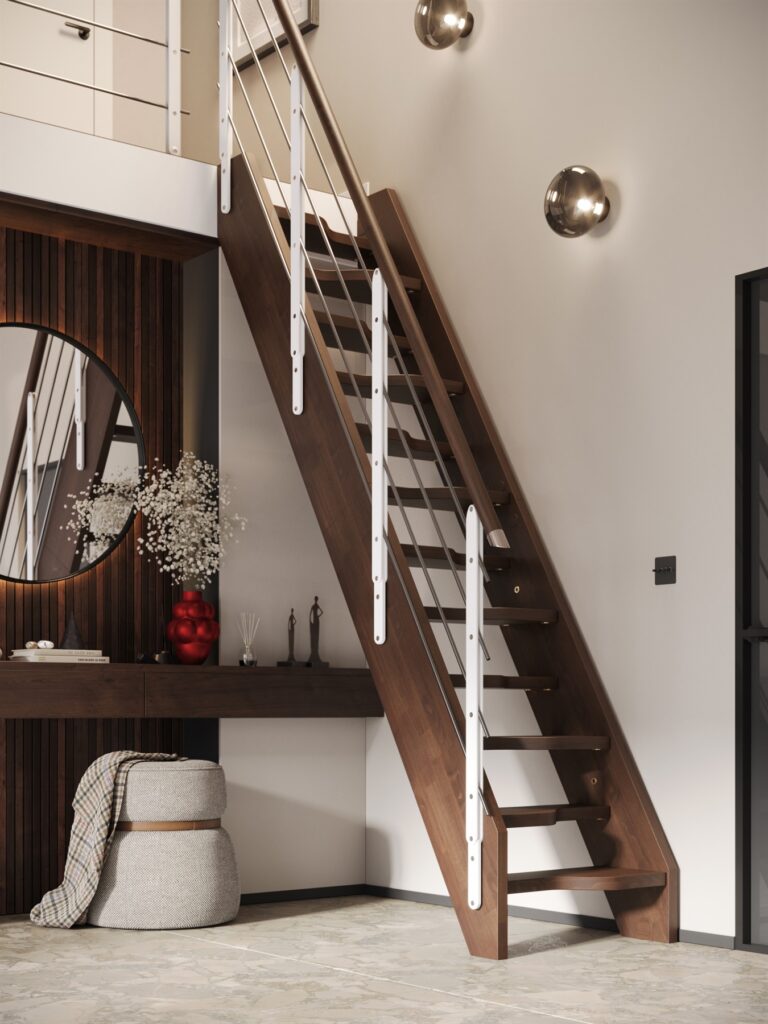 La produzione di scale in legno di Rintal spazia fra scale completamente in legno o scale in legno e metallo, dove il legno è il materiale di cui è costituita la pedata della scala e il metallo si trova nella struttura, che può essere laterale o centrale...